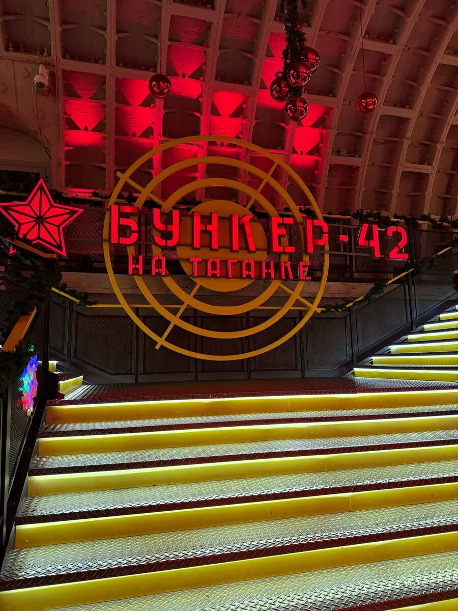" Как я уже говорила, это самый глубокий ресторан в России и Европе, - 65 метров под землей. Есть несколько залов: 🔘Банкетный зал (их несколько) 🔘Курительная комната с баром и телевизором) 🔘Детский зал 🔘»Красный» зал, это общий зал для всех посетителей, где мы и были. Здесь царит советская атмосфера: Несколько телевизоров на которых траслируются советские фильмы, играет соответствующая музыка, сервировка, подача блюд. 🎶Есть сцена, по выходным здесь живая музыка. 🔜МЕНЮ Мы прошлись по-классике: Оливье, Цезарь, Котлета по-киевски, Горшочек и чай) Сюда можно прийти и без экскурсии, немного захватите коридор бункера пока будете идти и конечно, стук и звук метро на протяжении всего вечера😃 ⏰Пн - Пт: с 13.00 до 23.00 Сб - Вс: с 12.00 до 23.00 📍Бункер -42 5-й Котельнический переулок, д.11 #идеи_23февраля_кд 😍 Красота в деталях