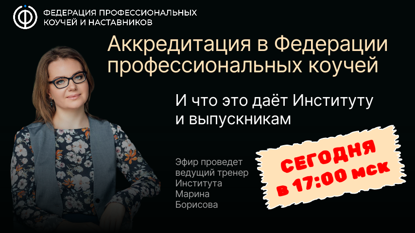 Сегодня в 17:00 мск состоится эфир про Аккредитацию сертификационной программы «Детский и подростковый коучинг» в Федерации профессиональных коучей. Тренер Института Марина Борисова ответит на вопросы: - Почему мы вообще решили аккредитовать программу «Детский и подростковый коучинг"? - Почему для аккредитации мы выбрали именно данную Федерацию? - Новые возможности Института и нашей команды - Какие преимущества аккредитация дает нашим студентам и выпускникам? Для участия в 17:00мск проходите В zoom по ссылке: https://us06web.zoom.us/j/89198754684?pwd=4Shbcdc68w3YF72jtkoNyk9SFhbd4F.1 Идентификатор конференции: 891 9875 4684 Код доступа: 663353 Или в ВК: https://vkvideo.ru/video-76301535_456239499