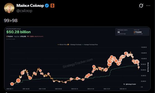 ⚡️ МАЙКЛ СЭЙЛОР НАМЕКАЕТ НА ПОКУПКУ 99-ГО БИТКОИНА.