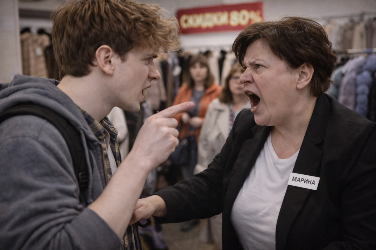 — Вот, — Марина ткнула пальцем в Тимофея. — Ходит, вопросы задаёт, покупателям мешает. Документы требует.