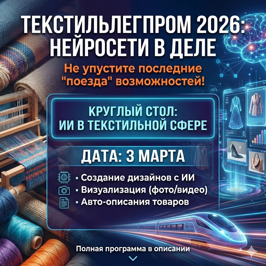 Нейросети в текстиле: кто успел – тот и съел рынок. 3 марта во время Текстильлегпром 2026, круглый стол на эту тему.