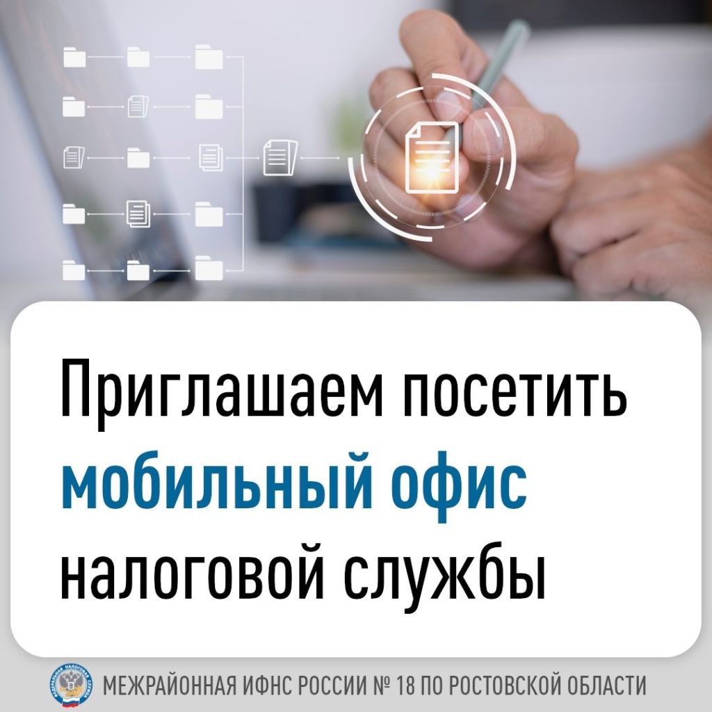 Межрайоная ИФНС России № 18 по Ростовской области сообщает, что в феврале 2026 года будет организована работа мобильных офисовналоговой службы с целью информирования граждан по вопросам декларирования налога на доходы физических лиц. Работа мобильных офисов будет осуществляться по следующему графику: — 12 февраля – c 10 до 12 часов в Администрации Новобатайского сельского поселения по адресу: Кагальницкий район, с. Новобатайск, ул. Ленина, 68; — 26 февраля – c 10 до 12 часов в Администрации Кринично-Лугского сельского поселения по адресу: Куйбышевский район, х. Кринично-Лугский, ул. Советская, 5А. Во время работы мобильного офиса каждый посетитель сможет: • узнать о категориях физических лиц, обязанных декларировать доходы, о порядке и сроках предоставления налоговых вычетов на основании налоговой декларации 3-НДФЛ, а также о получении налоговых вычетов в упрощенном порядке согласно ст. 221.1 НК РФ; • получить информацию о порядке исчисления, льготах, сроке уплаты имущественных налогов