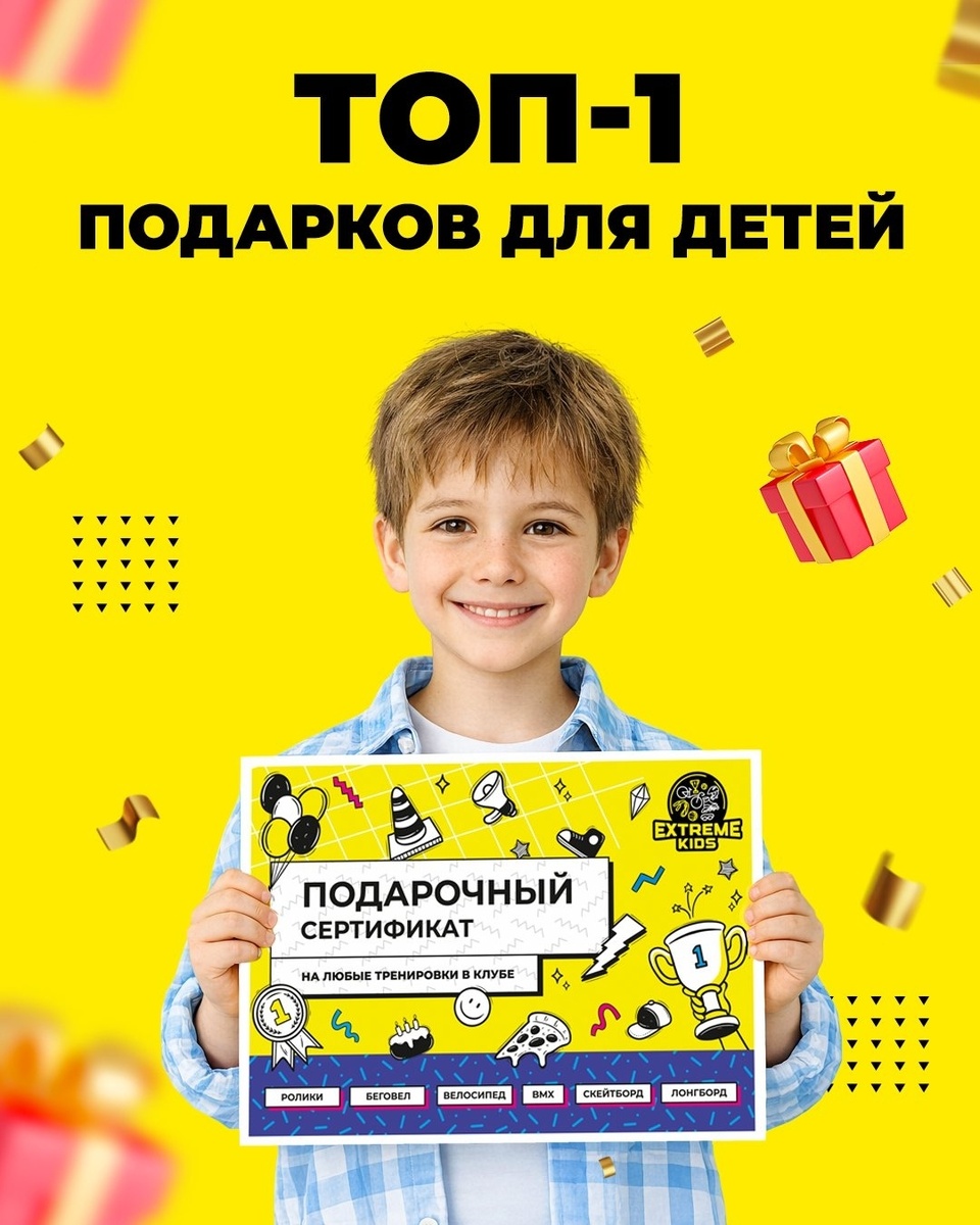 Вы уже, наверное, догадались – лучший подарок это впечатления и новые эмоции! Сертификат на тренировки в EXTREME KIDS как раз то, что нужно. С ним можно порадовать кого угодно: тренировки подходят для любого возраста, а кататься можно даже всей семьей. Берите на заметку 😉 За подробностями пишите в ВК или узнавайте у администратора. А лучше приезжайте в ваш любимый клуб EXTREME KIDS и приобретайте сертификаты для всей семьи и друзей!