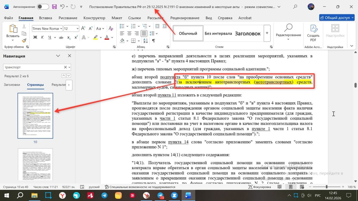 N 2191 О ВНЕСЕНИИ ИЗМЕНЕНИЙ В НЕКОТОРЫЕ АКТЫ ПРАВИТЕЛЬСТВА РОССИЙСКОЙ ФЕДЕРАЦИИ с 2026 года за счет соцконтракта нельзя приобрести автотранспортные средства, самоходные машины и иные ТС.