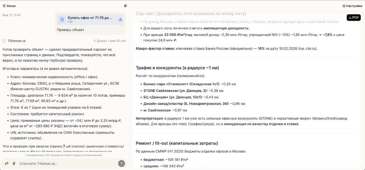 Раньше я буквально жил в таблицах. Часы. Каждый день. Оценить сделку — это значит: формулы, модели, бесконечные правки, «а давай ещё один сценарий», «почему здесь не бьётся?», ужин перед экраном и красные глаза А теперь всё по-другому. Я просто пишу: «Проверь объект» Квартира, офис, целое здание — не важно. ИИ начинает работать. Потом я пишу: «Выгрузи всё в Excel» Пока он считает, я закрываю ноутбук, иду спокойно завтракать. Без ручных моделей. Без ковыряния в формулах. Без “я не дружу с цифрами”. Я больше не работаю в Excel. Работа происходит без меня — а Excel я получаю уже готовым файлом, чтобы можно было показать партнёру, инвестору или отправить в банк. Хочешь протестировать? Напиши в комментариях «ИИ» — дам доступ. И отправь запрос в контакты, чтобы я мог написать тебе в личку. #искусственныйинтеллект #иидлябизнеса #ai #инвестициивнедвижимость #недвижимость