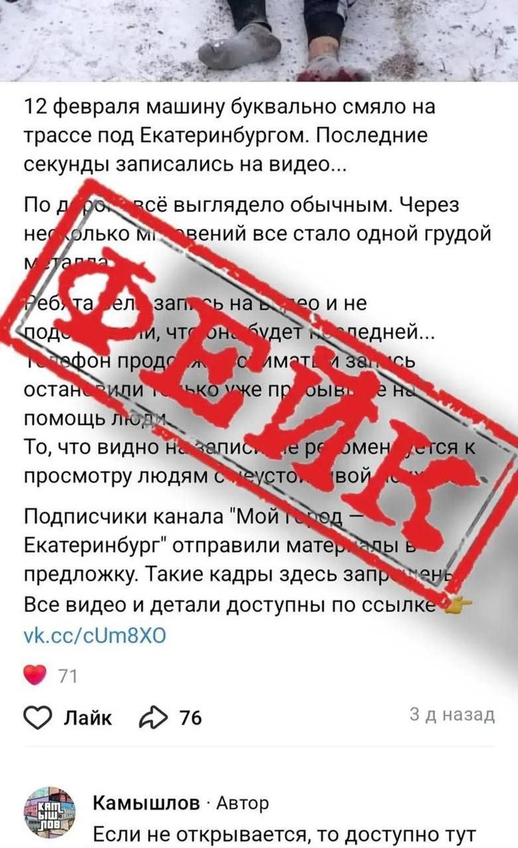 Госавтоинспекция Свердловской области предупреждает о распространении в соцсетях и мессенджерах ложных сообщений о смертельных ДТП. Мошенники публикуют посты о «трагедиях» под Камышловом и другими городами региона, сопровождая их призывами перейти по ссылке для просмотра «шокирующих кадров». Главная цель злоумышленников — получение доступа к личным данным и банковским счетам пользователей. Клик по ссылке может привести к заражению устройства вирусами или оформлению скрытых платных подписок. В ГАИ призывают граждан доверять только официальным источникам, не переходить по подозрительным адресам и не тиражировать лжесенсации. 📸: тг ГАИ Свердловской области Подписаться: https://dzen.ru/id/689639a4eb96fd517437fe69 Новости и фото отправляйте в чат-бот: @Rezh_best_news_bot