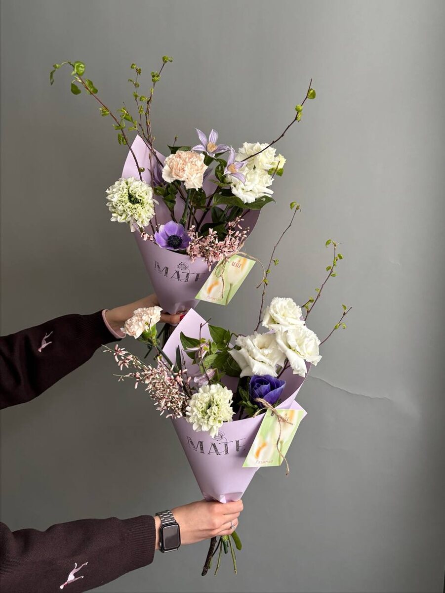 😍💐 Как вам новенькие дофаминовые кулечки с цветами по скидке?? Смотрим: 😍 в оранжевом 2900 вместо 3650.- 🪸 в персиковом 3100 вместо 3750.- 💄 в лавандовом 3450 вместо 4200.- Для заказа: @mateflowers_bot