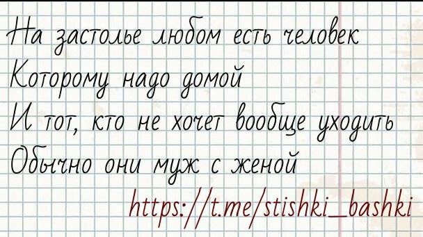 #вгостяххорошо #стишкиизбашки Стишок каждый день для настроения @stishki_bashki 📹 - видеостишки тут 👈 🙊 - а тут можно комментировать 👈 Поделитесь стишком с друзьями