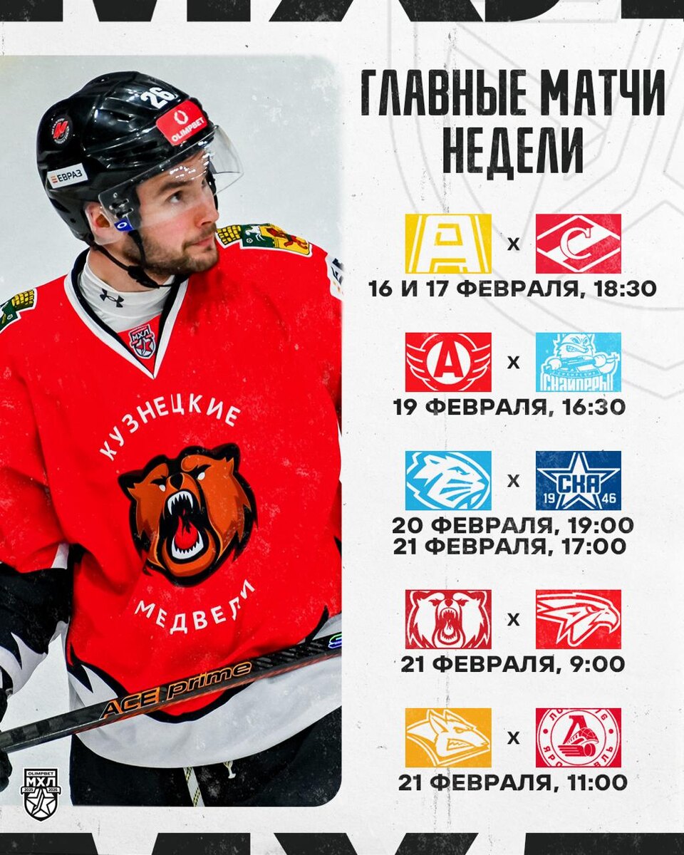Противостояния «Золота» и «Серебра», «Динамо-Шинник» принимает «СКА-1946», «Кузнецкие Медведи» против «Омских Ястребов». Превью 24-й недели OLIMPBET регулярного чемпионата МХЛ