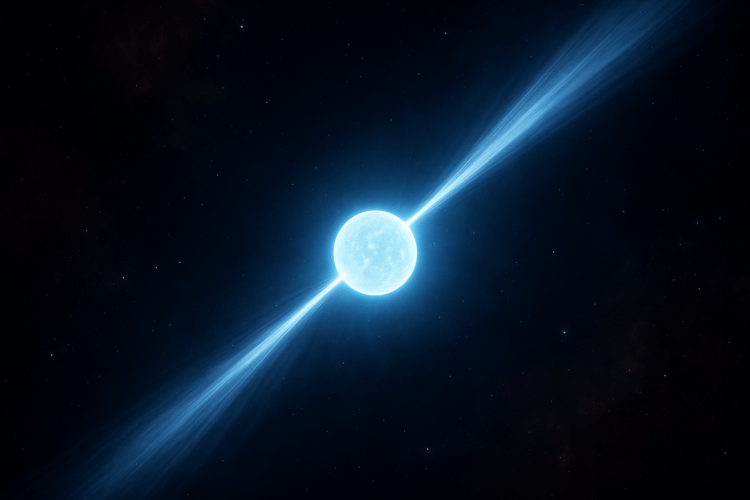 Пульсарами эти объекты становятся благодаря простому геометрическому эффекту. Нейтронная звезда обладает гигантским магнитным полем, ось которого не совпадает с осью вращения. Вдоль магнитных полюсов вырываются узкие пучки излучения. Звезда вращается — и пучки заметают пространство, как свет маяка.