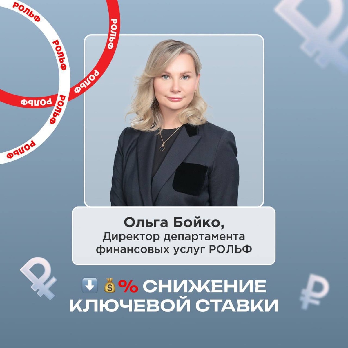 Банк России снизил ключевую ставку с 16% до 15,5% годовых. Это уже шестое подряд решение регулятора о смягчении денежно-кредитной политики. Комментирует директор департамента финансовых услуг компании «РОЛЬФ» Ольга Бойко: «Решение регулятора о снижении ключевой ставки демонстрирует, что борьба с инфляционными рисками приносит свои плоды. ЦБ подает сигналы о повышении доступности кредитования – как в потребительском, так и в корпоративном сегменте. Мы ожидаем дальнейшего смягчения кредитной политики. Это окажет позитивное влияние на автомобильный рынок и бизнес в целом. При этом значение ставки все еще остается высоким и пока не может стать мощным драйвером оживления рынка. На авторынке объем сделок с привлечением заемных средств остается стабильно высоким, в том числе за счет субсидированных программ на новые автомобили». Подробнее читайте – в «Российской газете» Воспользуйтесь предложениями от РОЛЬФ Финанс. У нас эксклюзивные условия от ведущих банков и страховых компаний. Решение по