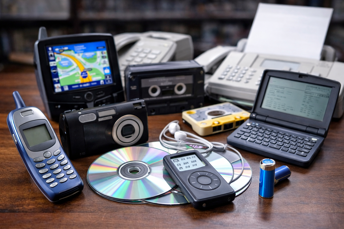 Десять–пятнадцать лет назад многие вещи казались неотъемлемой частью быта. Без них трудно было представить поездку, работу или вечер дома. Сегодня о них вспоминают только при разборе старых коробок. Исчезновение техники стало фоном повседневности.