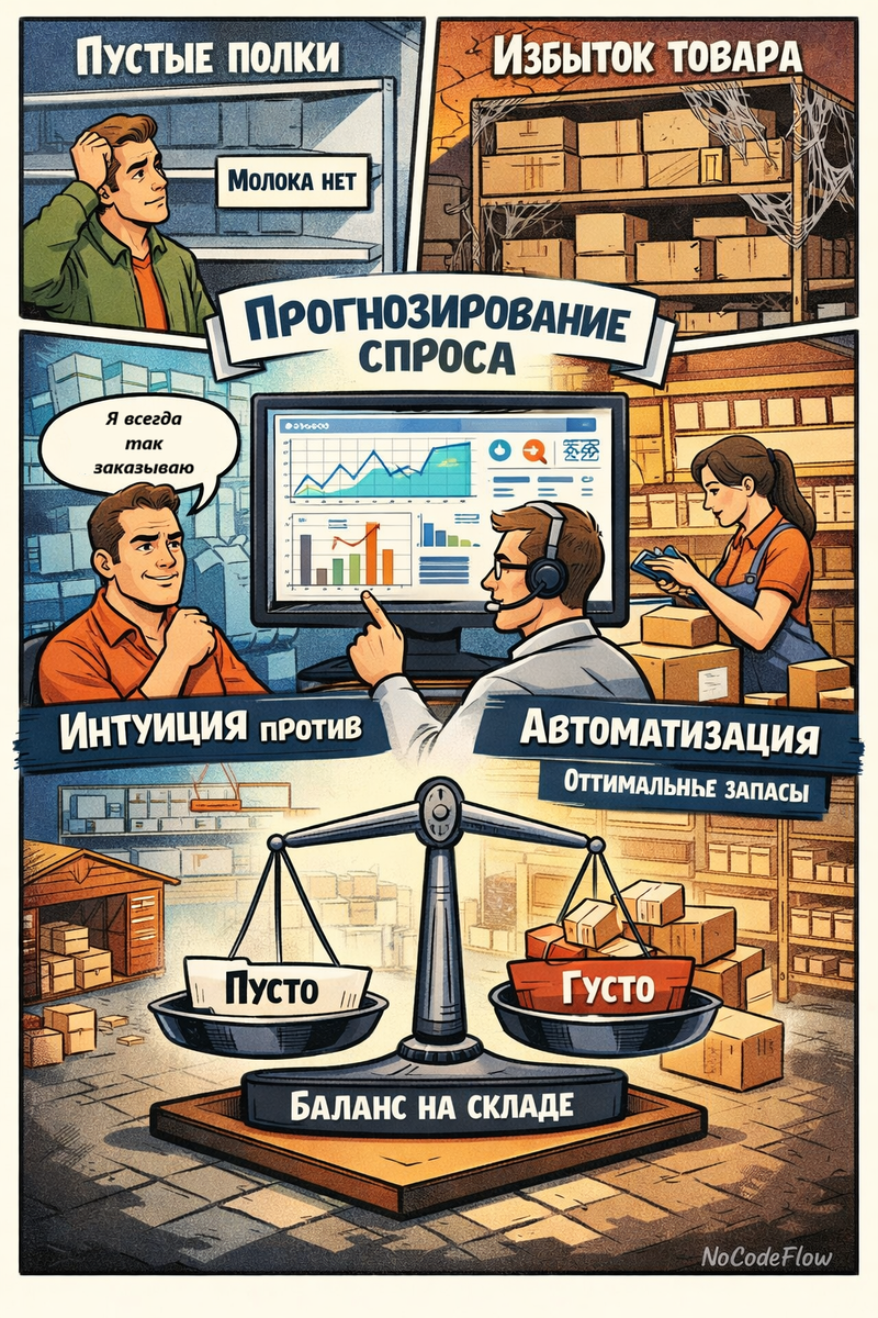 Вы наверняка замечали эту странную вещь в обычных магазинах. Заходишь за молоком, а полка пустая. Или наоборот — проходишь мимо стеллажа, а там стоят коробки с каким-то товаром, покрытые слоем пыли. Кажется, что это просто недосмотр, чья-то ошибка. Но если копнуть глубже, становится понятно: за этим стоит огромная проблема, с которой бьются ритейлеры любого масштаба. Речь о том, чтобы угадать, сколько товара нужно привезти завтра, через неделю или к праздникам.