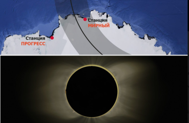 Произойдёт на Земле во вторник, 17 февраля, примерно с 14:50 до 15:36 по московскому времени. Увидеть, как солнечный диск превращается в кольцо, можно будет только в Антарктиде, число зрителей, которые смогут наблюдать это своими глазами, судя по всему, будет, скорее всего, несколько человек. Единственной из десятков антарктических станций, попадающей в кольцевую полосу затмения, является станция «Мирный», находящаяся на побережье моря Дейвиса.