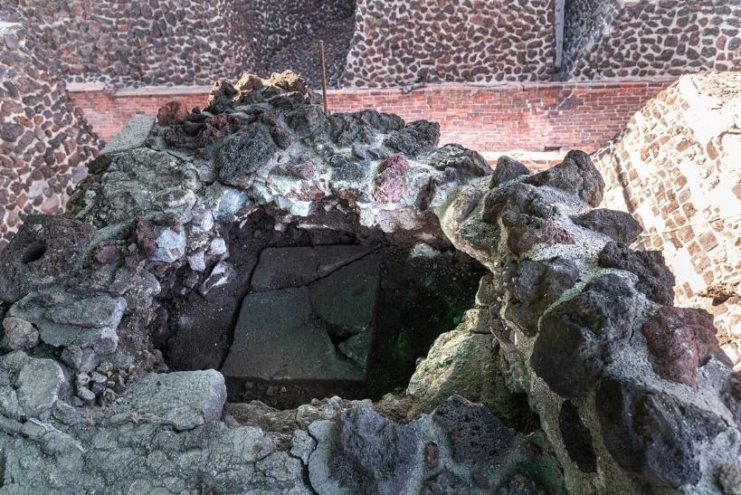 Речь идёт о Темпло Майор — главном храмовом комплексе Теночтитлана, столицы ацтекской империи, который в XV веке был не просто религиозным центром, а сердцем политической системы. Тайник обнаружили под одной из платформ заднего фасада храма Хуэй Теокалли, в культурном слое времени правления Монтесумы I, что позволяет датировать закладку примерно 570 годами назад. Каменный ящик был аккуратно установлен и закрыт так, словно жрецы рассчитывали, что его никогда не откроют, потому что подношения предназначались не людям, а богам.