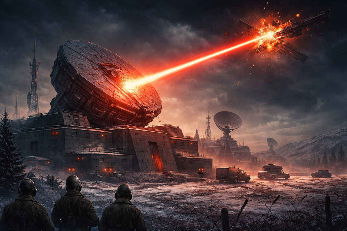 Полигон в Сары-Шагане, Казахстан. Внешне – обычная военная база посреди степи. Но если присмотреться, в центре комплекса возвышается гигантское зеркало диаметром 20 метров. Не телескоп. Не радар. Лазерная пушка мощностью в несколько мегаватт.