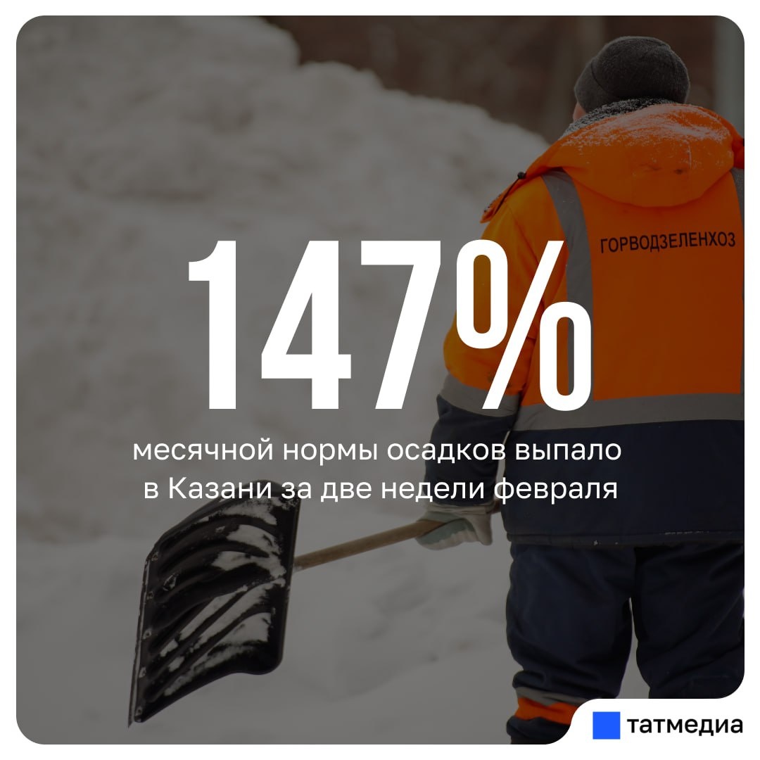 📏🌨По данным Гидрометцентра Татарстана, за две недели февраля в Казани выпало 54,4 мм осадков при месячной норме в 37 мм