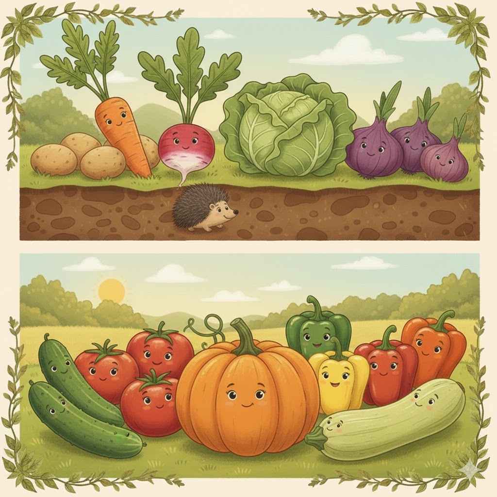 - Как на нашей грядке выросли загадки — сочные да крупные, вот такие круглые. Летом зеленеют, к осени краснеют. (Помидоры)