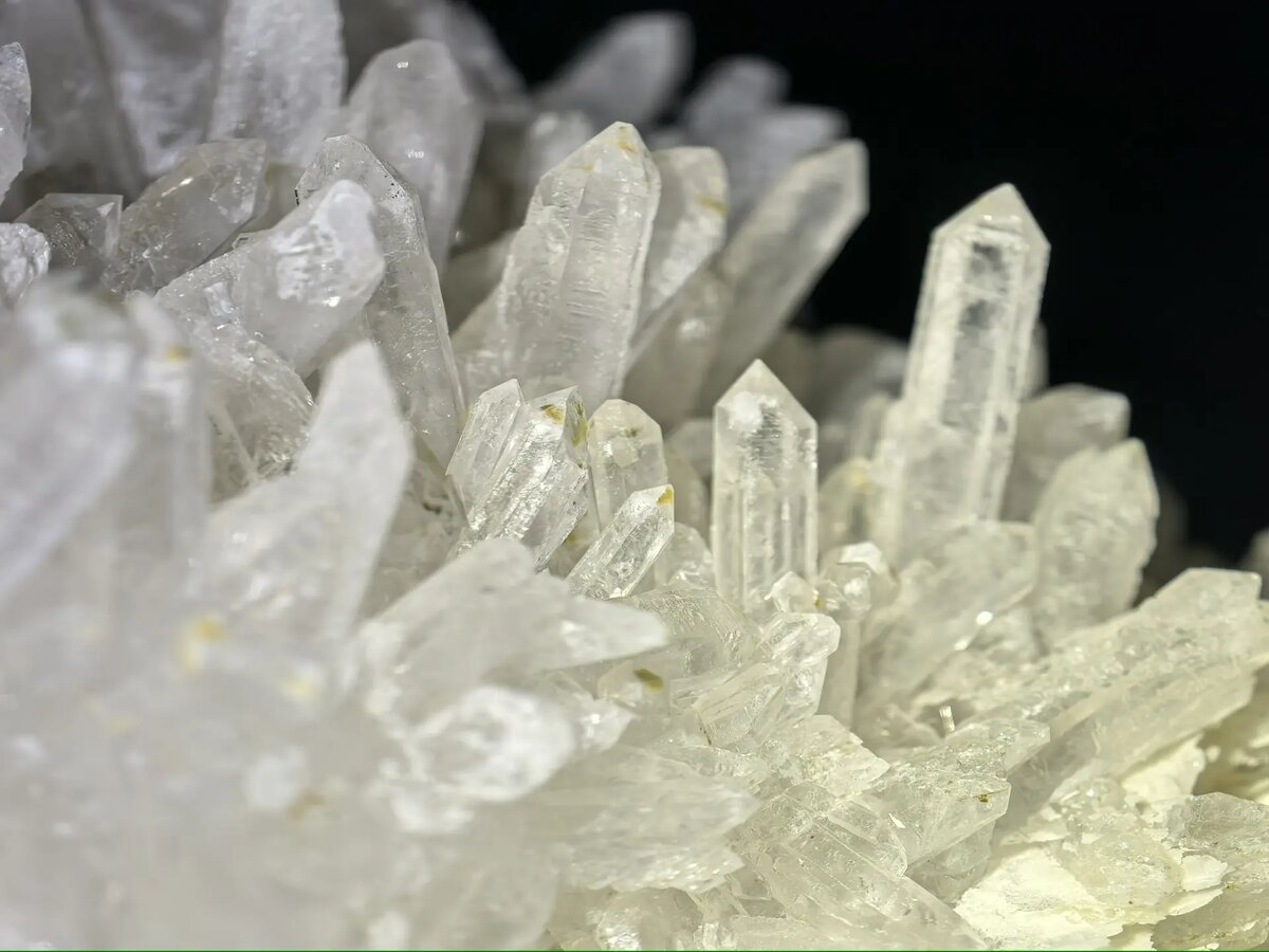 - Переключитесь на “низ”. Там, где видны пластинчатые слои, друза ощущается как архитектура: «пластины/террасы» + «лес кристаллов» сверху.