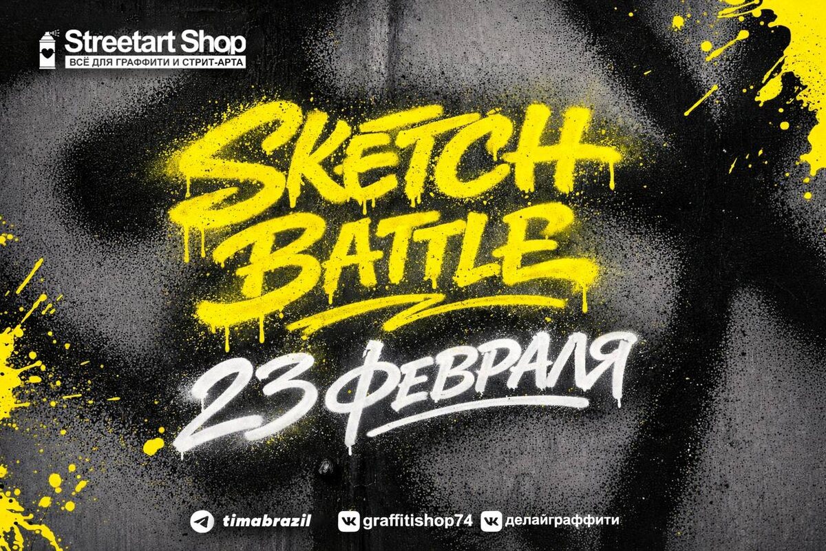! Делай Граффити х StreetArtShop Для того чтобы принять участие, необходимо до 23 февраля сделать скетч со словом «ДЕЛАЙ» или «делай граффити» и подать заявку! Заявку на баттл присылайте в обсуждение по категориям: Beginners PRO Эскиз может быть выполнен в любом формате: фотография рисунка на бумаге или цифровое изображение. *Фото должно быть в хорошем качестве.* 23 февраля пройдет голосование за лучшую работу. Обязательное условие — быть подписанным на этот канал и SASH В баттле будет две категории: Призы PRO: 1 место — мерч от нашей команды, набор акриловых маркеров Fat&Skinny, скетчбук Fat&Skinny a4, наклейки Molotow Set B. Призы Beginners: 1 место — мерч от нашей команды, набор акриловых маркеров Fat&Skinny, скетчбук Fat&Skinny a4, наклейки Molotow Set B, промокод на покупку онлайн-курса. Все работы попадут в наше новое видео на YouTube и VK Видео, где будет обзор участников. Раздайте стиля!