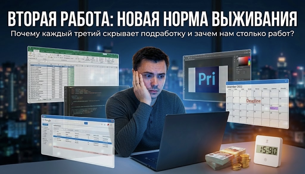 Сегодня это новая норма. Каждый третий житель России скрывает от работодателя наличие подработки. А 75% россиян так или иначе совмещают несколько источников дохода. И это, пожалуй, один из самых честных маркеров состояния экономики. Это не про «хочу больше». Это про «боюсь остаться без всего» Основная причина поиска дополнительного заработка, это нехватка дохода с основной работы (47%).