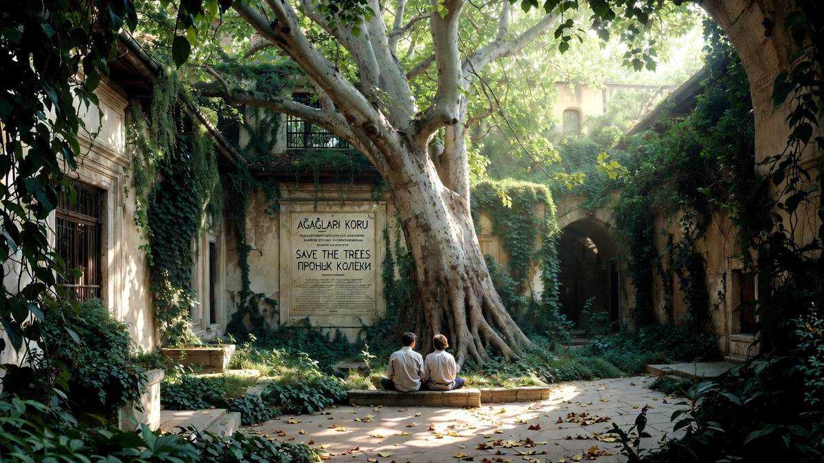 Конференция в университете прошла успешно. Лейла выступала с блестящим докладом о влиянии «Диалога» на современные межрелигиозные инициативы. Артём и Софья сидели в последнем ряду, слушали и чувствовали гордость — не за себя, а за неё, за всех, кто подхватил эстафету. После конференции был фуршет. К ним подходили люди — молодые учёные, аспиранты, просто интересующиеся. Кто-то узнавал (хотя они старались держаться в тени), кто-то просто хотел поговорить. Одна девушка из Ливана сказала: «Я пишу диссертацию по вашему тексту. Он изменил мою жизнь. Спасибо». И Артём вдруг понял, что они уже не просто люди. Они стали символом. И это было странно и немного грустно. На следующий день, перед отъездом, они попросили Лейлу отвезти их ещё в одно место. Во двор старой бани, где когда-то, по преданию, встретились три философа. Они приехали туда ранним утром, пока город ещё спал. Двор был таким же, как много лет назад: заросший, заброшенный, с огромным платаном в центре. Но теперь на стене, где когда