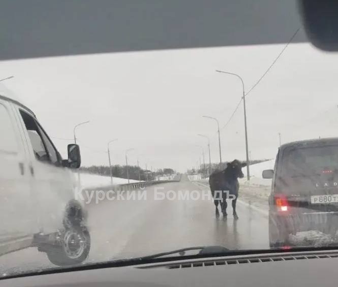 Сегодня в Курске свой вклад в сложную ситуацию, спровоцированную снегопадом, ливнем и лужами, внесла еще и чья-то корова
