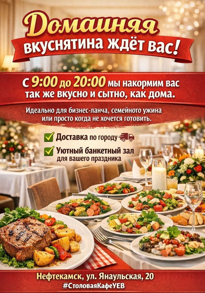 Уважаемы жители и гости города! С радостью сообщаем Вам, что столовая по Янаульской 20( бывший перегон) снова распахнул для Вас свои