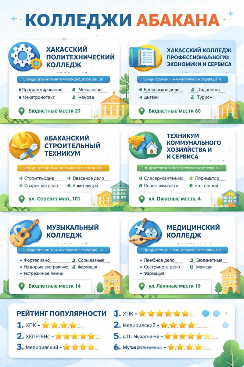 Абакан — город небольшой, но здесь реально можно получить профессию, которая прокормит. И не просто прокормит, а сделает востребованным специалистом. Колледжи тут не для галочки — здесь учат работать руками, головой и душой. Выбирайте не по названию, а по призванию. И пусть ваш ребёнок найдёт дело, которое будет любить.