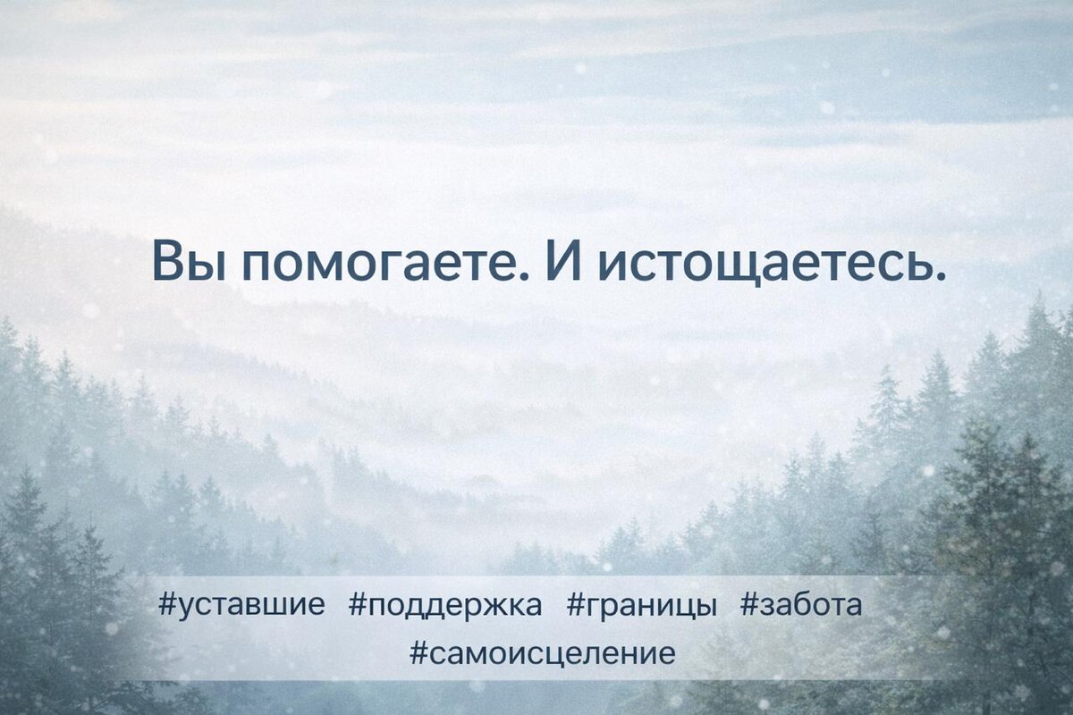 И истощаетесь. Вы тот, к кому приходят. С вопросами. С проблемами. С болью. Вы умеете слушать. Поддерживать. Разруливать. Быть взрослым. И почти никто не спрашивает: а вы как? Помогающие люди редко падают громко. Они выгорают тихо. Сначала пропадает радость. Потом — энергия. Потом — раздражение на тех, кому помогают. Потом — чувство вины за это раздражение. И всё по кругу. Вы не железные. Даже если привыкли быть опорой. Есть тонкая грань между заботой и самоуничтожением. Между служением и попыткой заслужить любовь. Между «я хочу помочь» и «если я не помогу — я никому не нужен». Иногда истощение — это сигнал. Не о слабости. А о том, что вы слишком долго ставили себя последним. Помощь без границ превращается в самоотдачу до нуля. А из нуля невозможно поддерживать. Зрелая забота начинается с фразы: «Я тоже важен». Не потом. Не когда всё у всех наладится. А сейчас. Вы можете быть добрым. И при этом уставшим. Можете помогать. И при этом говорить «нет». И это не эгоизм. Это со