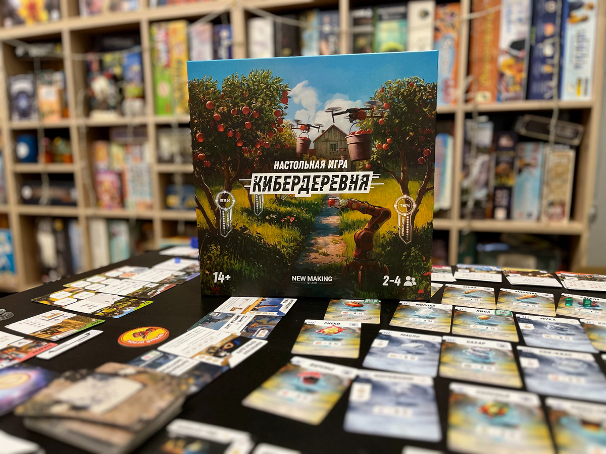 Игра занимает очень много места, это тоже нужно отметить, что не совсем характерно для карточных игр. А вообще чувствуется, что ребята создавали «Кибердеревню» с удовольствием. Это ощущается не только в мелочах, но и благодаря буклету из 50 страниц, под стать любому руководству с приключениями. Авторы явно очень хотели, чтобы вы с лёгкостью разобрались в игре, ознакомившись со всеми примерами и мелочами. А вас заинтересовала «Кибердеревня», хотели бы её опробовать?