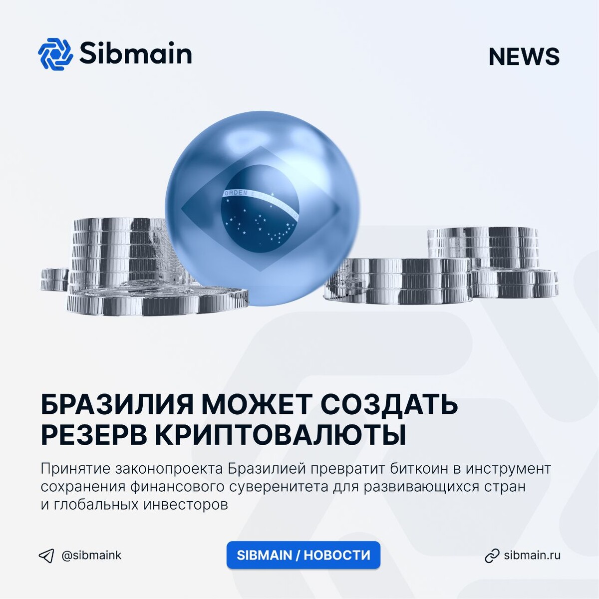📰📰📰📰 ➡️Бразилия может создать резерв криптовалюты Правительство Бразилии внесло на рассмотрение законопроект о создании стратегического резерва объёмам 1 млн биткоинов. Причины создания инициативы: ⏺Защита экономики от инфляции; ⏺Интеграция криптовалюты в экономику; ⏺Хеджирование рисков национальной валюты 📍Принятие законопроекта Бразилией превратит биткоин в инструмент сохранения финансового суверенитета для развивающихся стран и глобальных инвесторов