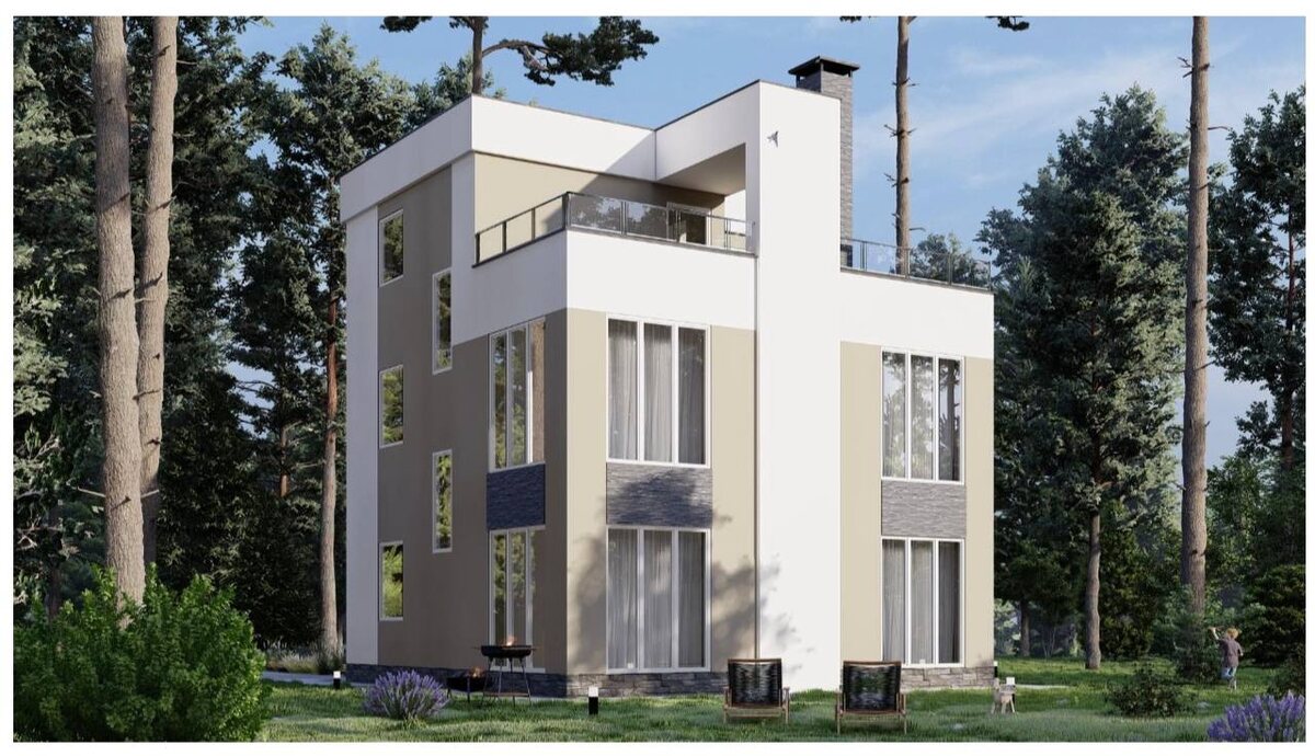 🏠 🫣Казалось бы, дом 9*9 Но посмотрите какой симпатичный проект с панорамным остеклением, плоской кровлей и третьим этажом ➖ габариты 9*9 ➖ внешние несущие стены 400мм ➖ внутренние несущие 300мм Площадь без учета крыльца и террасы 137м² Отдельная постирочная и большой гардероб на втором этаже, а на третьем этаже комната 26м² для реализации хоть спортивного зала, хоть своей мастерской 🎨 Стоимость строительства с нами в 2026: 33000 руб/м² двухэтажный дом 40000 руб/м² одноэтажный дом