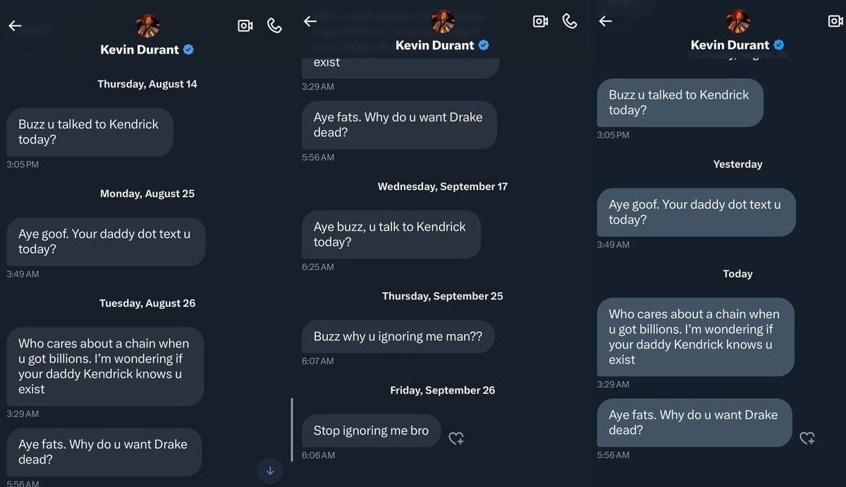 Kevin Durant в частном порядке ответил пользователю X, который задирал его из-за конфликта Kendrick Lamar и Drake, и встал на защиту Drake
