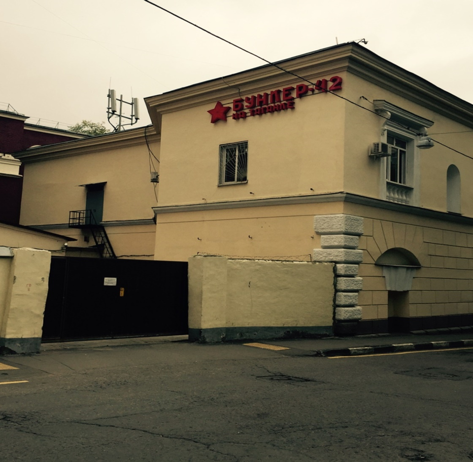 Музей холодной войны «Бункер-42», который находится на Таганке, он же «Бункер Сталина», располагается по адресу: Москва, 5-й Котельнический переулок, д. 11. Он является крупнейшим подземным комплексом «Бункер-42» на Таганке является уникальным объектом, находящимся в самом центре Москвы на глубине 65 метров. Проектирование комплекса началось еще в сороковые годы, с началом холодной войны, по указанию Сталина В 1951 году объект начал строиться по технологиям строительства Московского Метро На 1956 год бункер имел площадь 7000 квадратных метров. Принимающая Государственная комиссия передала его в ведение Министерства обороны. Подземный комплекс имел тоннели, что были связаны двумя ходами с метро «Таганская». Первый ход использовался для снабжения объекта. Вход в туннель между станциями «Таганской» и «Курской». Второй ход был проложен в технические помещения станции «Таганской кольцевой». Сам бункер использовался в виде Запасного командного пункта Штаба дальней авиации. Отсюда полетели б