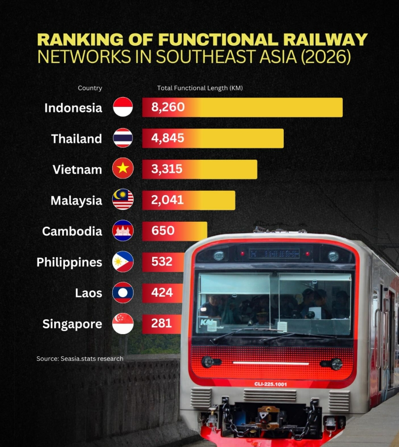В 2026 году железнодорожная карта Юго-Восточной Азии имеет четких лидеров! Индонезия, Таиланд и Вьетнам уверенно занимают пьедестал почета по общей протяженности действующих ж/д путей. Индонезия без сомнения лидирует с огромным отрывом – 8 260 км. Это свидетельствует о многолетнем значении ж/д транспорта для страны, обеспечивая передвижение пассажиров и грузов между островами. Таиланд занимает почетное второе место с 4 845 км . Страна продолжает активно инвестировать в модернизацию своих путей, соединяя Бангкок с регионами и став важным транспортным коридором. Вьетнам замыкает тройку лидеров, располагая 3 315 км . Несмотря на меньший размер сети, она играет ключевую роль в сообщении между севером и югом и рассматривается как база для будущих модернизаций. Эти три страны задают темп развития железнодорожного транспорта во всем регионе! А вы когда-нибудь путешествовали на поезде по одному из этих направлений? Поделитесь впечатлениями! #Таиланд #ЮВА #ЖелезныеДороги #Путешествия #Транс