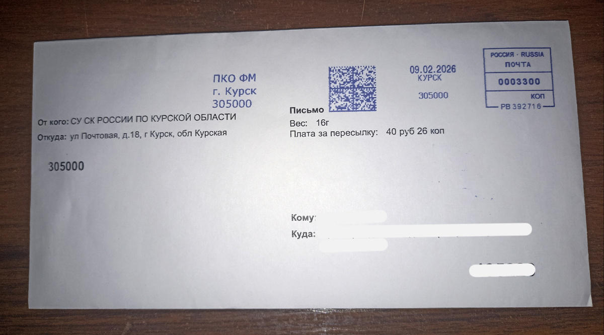 Вчера мне пришло письмо из Следственного комитета Курской области.