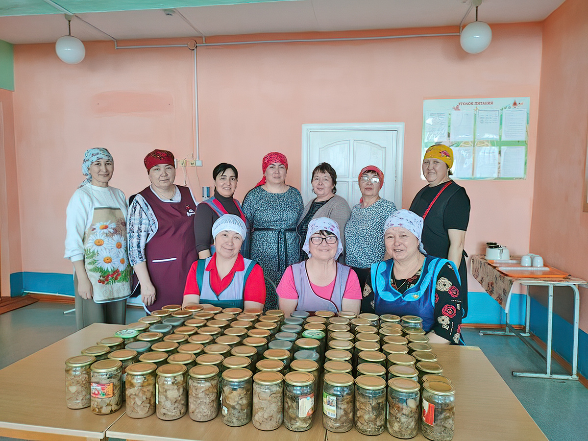 Коллектив сельской школы Баймакского района организовал масштабную благотворительную акцию по производству мясных консервов для участников специальной военной операции Силами педагогов, технических сотрудников и волонтеров было изготовлено около сотни банок домашней тушенки из отборной конины. Традиционное башкирское блюдо станет для военнослужащих не только питательным обедом, но и важным напоминанием о поддержке со стороны земляков. Основу для будущих консервов предоставил бывший директор образовательного учреждения и уважаемый местный житель Халит Сулейманов. Его личный вклад позволил запустить процесс массовой заготовки качественного домашнего продукта непосредственно на базе школы. Процесс приготовления объединил несколько поколений сельчан, превратив обычный субботник в значимое патриотическое событие для всего района. Организационные вопросы и логистику взяли на себя учитель физкультуры Расих Юртбаков и глава сельской администрации Ильгиз Янбердин. Благодаря их слаженным действи