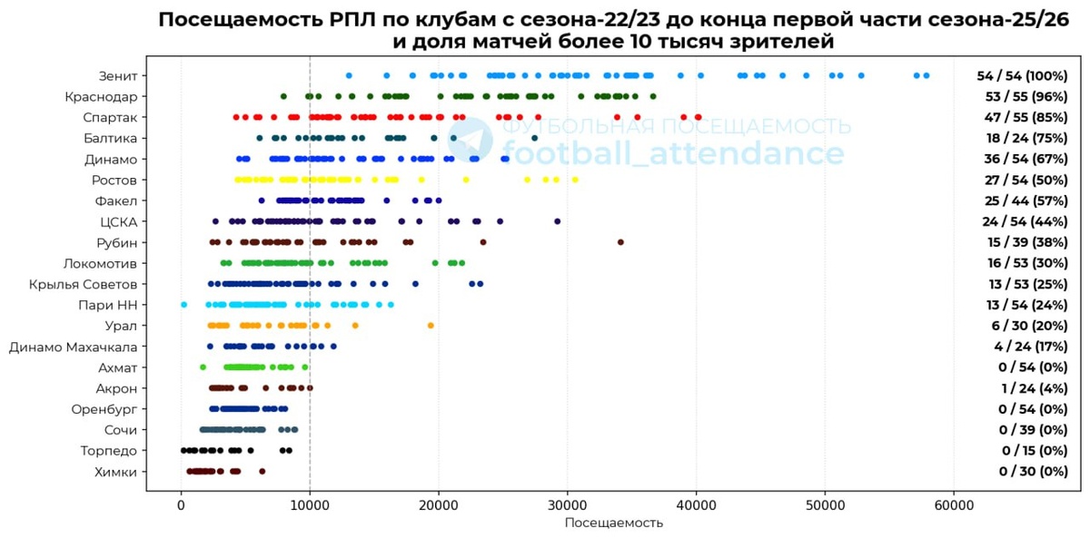 После двух сезонов «Тамбова» в РПЛ, когда клуб сыграл ровно нуль матчей в своём городе/регионе, РПЛ закрепила пункт в Регламенте, согласно которому в лигу будут допускать клубы, имеющие стадион в своём регионе вместимостью минимум 10 тысяч мест. После этой поправки вопрос инфраструктуры является одним из самых острых для клубов, которые находятся в верхней части таблицы Первой лиги. Так уже несколько перспективных команд, претендовавших на выход, были вынуждены сойти с дистанции именно из-за критерия по стадиону. Из свежи примеров на памяти под это правило один раз попал «Оренбург», затем симпатичная «Алания», сформированная из своих воспитанников, а также «Черноморец». В этом сезоне под риском отсева не по спортивному принципу костромской «Спартак» и «Челябинск». На Урале чуть ли не под руководством губернатора будут оперативно решать вопрос с ремонтом аварийной трибуны. А в Костроме в рекордные сроки возводят стадион со стационарной трибуной почти на 5 тысяч мест и остальными сборно-