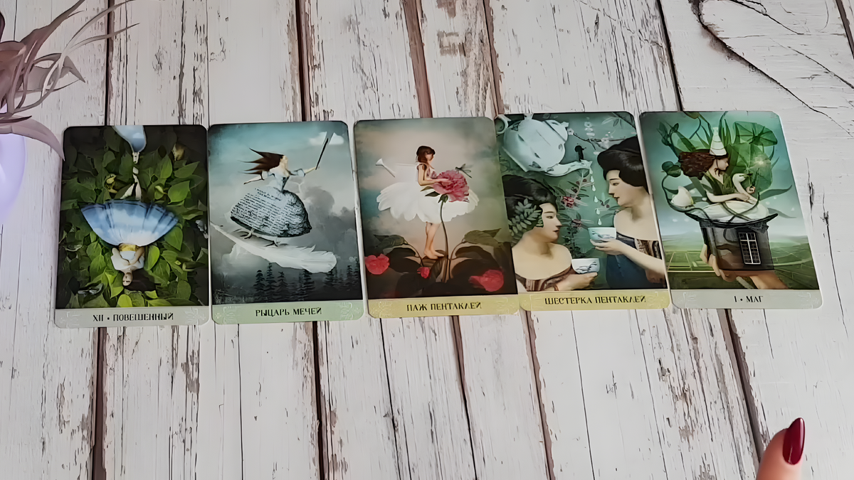 Теперь — ваши отношения с этим человеком. Тройка Мечей — разрушение. Он не догоняет, наоборот — сидит с разбитым сердцем, кровавыми слезами. Почему? Потому что либо у него есть другие отношения, либо причина вашего ухода — именно его новые или старые связи, из которых он никак не мог выйти. Четвёрка Жезлов — дом, уют, но вы одна держали эту башню. Он, как любой Повешенный, вошёл в ваше пространство и лег на диван, а вы — бедная — пытались удержать всё это здание. И вы ушли. Дурак — новый путь. Девятка Пентаклей — вы стали женщиной, которая сама себе хозяйка, ни на кого не рассчитывает. И, возможно, его оставили в дураках. Крокодил рядом с вами улыбается, но остаётся крокодилом — он куда-то готовится идти, но вы уже не его игрушка.