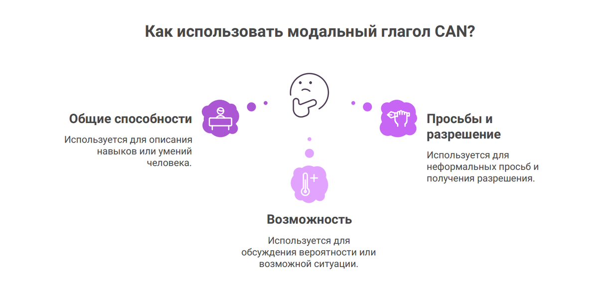 Если вы только начинаете учить английский или хотите сделать речь более естественной, глагол can — это must-know. Он встречается буквально в каждом диалоге: в фильмах, песнях, переписке и живой речи. Разберёмся, в каких ситуациях носители используют can и как не ошибаться. Самое базовое значение — говорить о том, что человек умеет делать. Используем, когда речь о навыках, талантах, физических или интеллектуальных возможностях. Примеры: — I can drive. — Я умею водить.