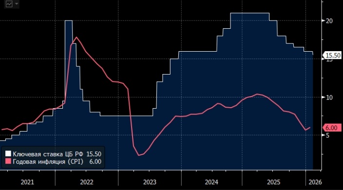 ЦБ РФ может понизить ставку до 15% в марте 2026г - SberCIB ЦБ РФ может понизить ключевую ставку еще на 50 базисных пунктов (до 15% годовых) в марте текущего года, а к концу 2026 года опустить ее до 12% годовых, считают аналитики SberCIB Investment Research. Банк России на заседании 13 февраля 2026 года рассматривал два варианта: снизить ставку до 15,5% или сохранить ее на уровне 16% годовых. В будущем, по словам регулятора, они могут рассматривать как более широкие шаги снижения, так и паузы. Комментарии ЦБ на пресс-конференции подтвердили смягчение его риторики, отмечают эксперты. Представители регулятора отметили, что у него появилось больше уверенности в том, что они смогут и дальше снижать ключевую ставку. По прогнозам аналитиков SberCIB, в марте ЦБ РФ может вновь снизить ставку еще на 50 базисных пунктов, до 15% годовых, а к концу текущего года она может опуститься до 12% годовых. Эксперты инвестбанка считают, что в условиях смягчения риторики регулятора ОФЗ с фиксированным купоно