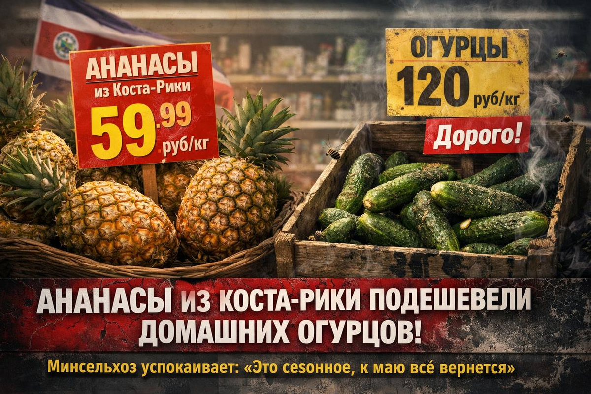 ЭКОНОМИЧЕСКОЕ ЧУДО ПО-РУССКИ: Ананасы из Коста-Рики стали дешевле родных огурцов. Минсельхоз успокаивает: «Это сезонное, к маю всё вернется»