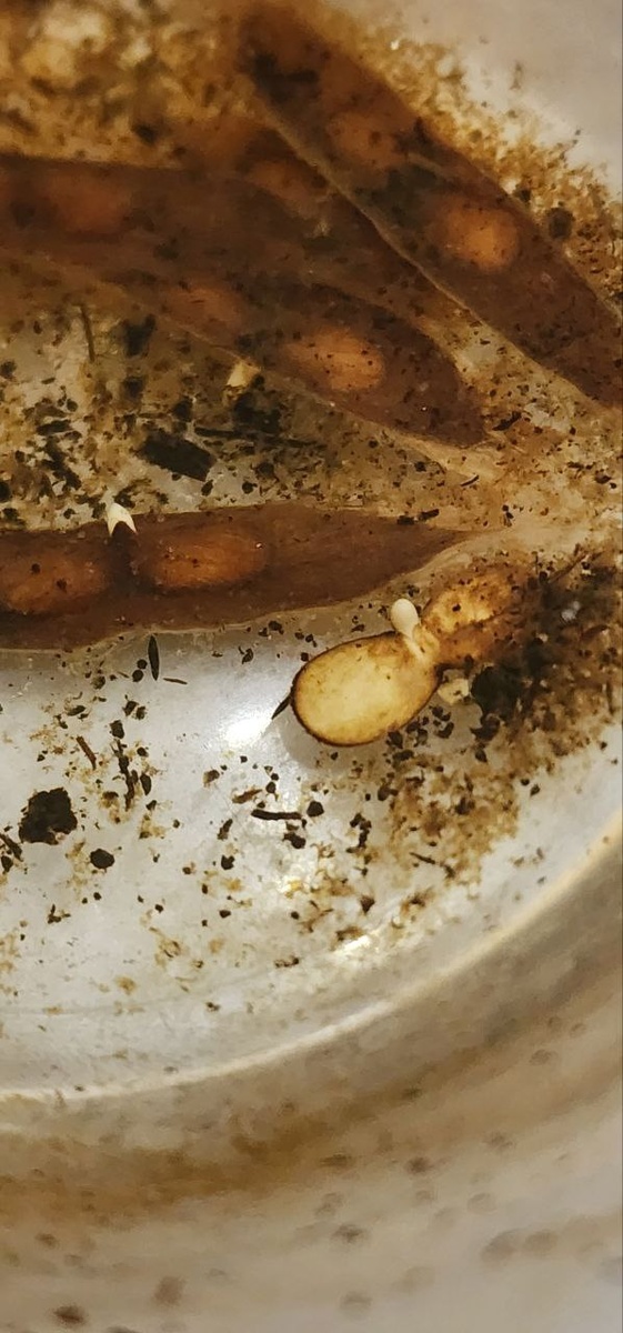 Как видите, корешки появились только сегодня, при этом воду надо было менять постоянно, поверхность постоянно покрывалась бактериальной плёнкой. Свежие семена 25 года проросли дней через 11, вода не менялась.
