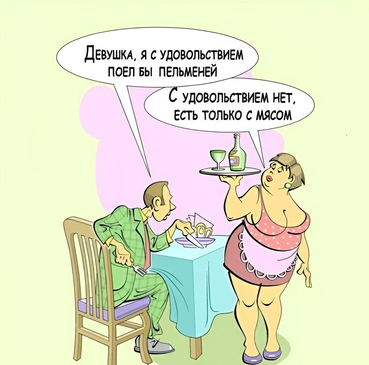 Классика нашего совместного быта. Я: «Может, сходим куда-нибудь поужинать?». Серёжа: «Давай». Я внутренне ликую, представляя уютный итальянский ресторанчик с пастой и свечами. Проходит час. Мы всё ещё дома. Я начинаю намекать: «Так что там с ужином?». Он: «Я готов, пошли». Я: «А ты куда хочешь?». Он: «Мне без разницы, решай ты». Я: «Ну выбери ты!». Он: «Я сказал — мне всё равно». Я: «Значит, тебе не хочется никуда идти?». Он: «Я не это сказал!». Кто выйдет из этого диалога победителем? Правильно, холодильник с пельменями.