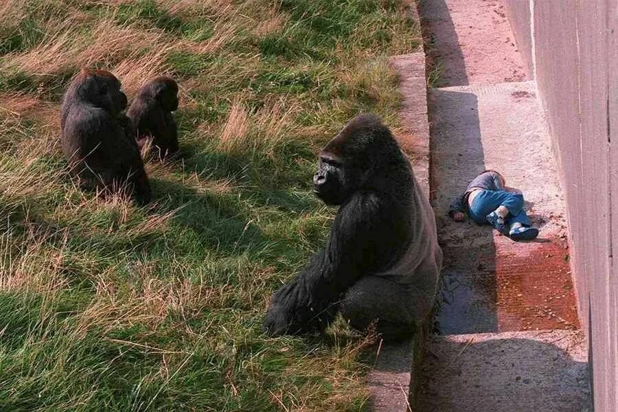 Для персонала и посетителей ситуация выглядела критической. Крупный серебристоспинный самец весом около 180 килограммов, лежащий без сознания ребёнок и растерянные люди по другую сторону ограждения. В те годы у сотрудников зоопарков не существовало протоколов быстрого применения транквилизаторов в подобных экстренных случаях.
