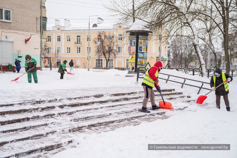 В Гомеле коммунальщики продолжают борьбу со снегопадами