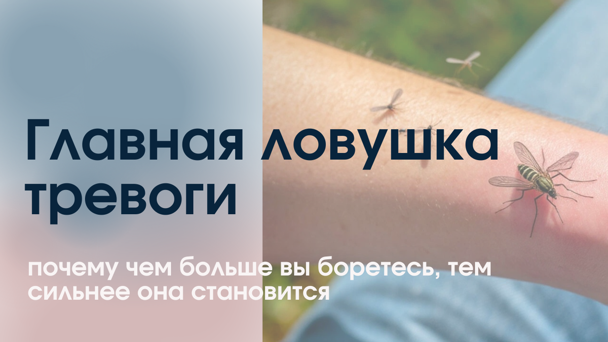 Также работает и механизм тревоги. Только вместо комариного укуса — столкновение с пугающей ситуацией или мыслью. А вместо расчесывания — наши попытки избежать дискомфорта.