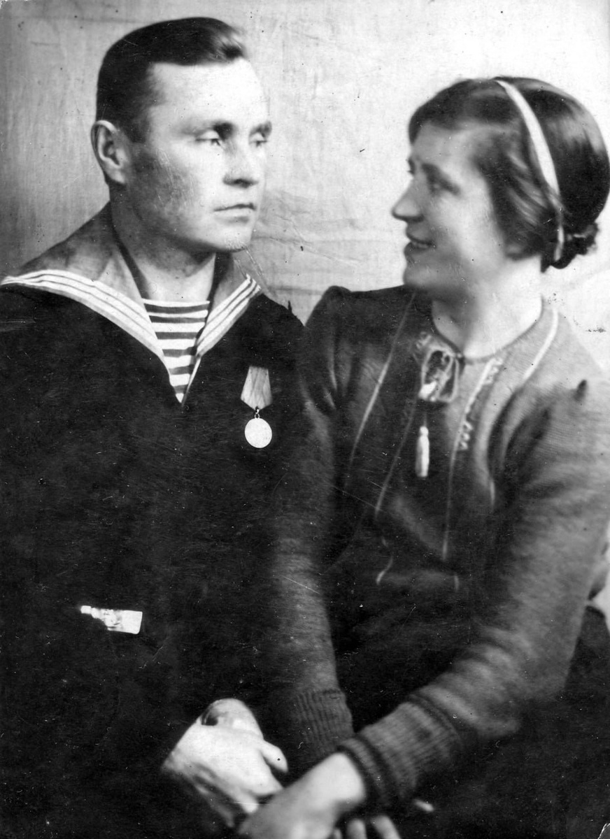 Матрос Балтийского флота в суконной форменной рубахе с медалью "За оборону Ленинграда".