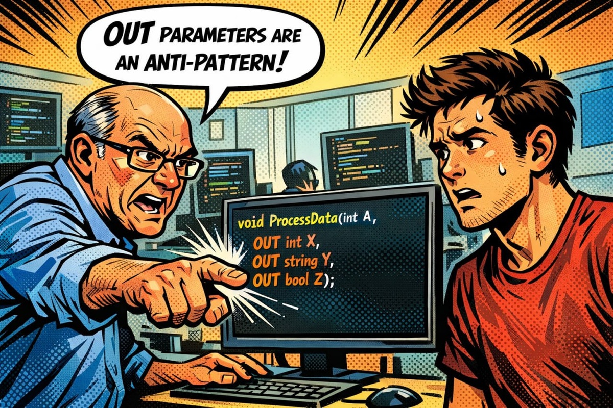 Коллеги, всем привет! Этот материал особенно полезен Junior и Middle разработчикам, работающим с PL/SQL. OUT-параметры в функциях кажутся удобным способом вернуть несколько значений одновременно. Однако их использование нарушает фундаментальный принцип функций - возвращать результат через RETURN. Это приводит к запутанному коду, сложностям в тестировании и неочевидным побочным эффектам. Разберём, почему это антипаттерн и как правильно решать задачу множественного возврата. Почему OUT-параметры в функциях - плохая практика 🔹 Нарушение семантики функции. Функция по определению должна возвращать одно значение через RETURN. OUT-параметры превращают её в гибрид функции и процедуры, что противоречит принципу единственной ответственности. 🔹 Невозможность использования в SQL. Функцию с OUT-параметрами нельзя вызвать напрямую в SELECT или WHERE-клаузе, что резко ограничивает её применимость. 🔹 Сложность тестирования. Приходится проверять не только возвращаемое значение, но и состояние O